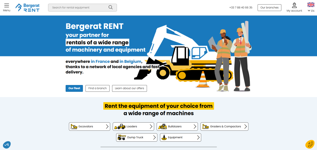 Bergerat RENT is Europe’s top bulldozer rental company. Thanks to its exclusive partnership with Cat, construction professionals get access to a wide range of equipment. This reliability is particularly a decisive factor, since many major providers don’t offer dozers or show the full availability of their fleet online.